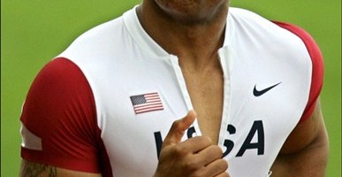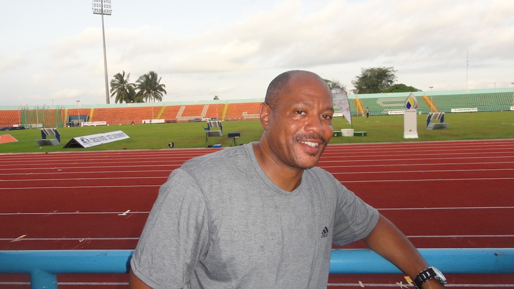 30 year-old Mark Jelks, Nigeria’s latest fastest man, talks to the Nigerian press immediately after his win in the 100 metres, in a time of 10.23 seconds (-2.3 m/s wind) at the Nigerian Trials at the UJ Esuene Stadium in Calabar on June 20th, 2014…