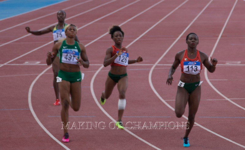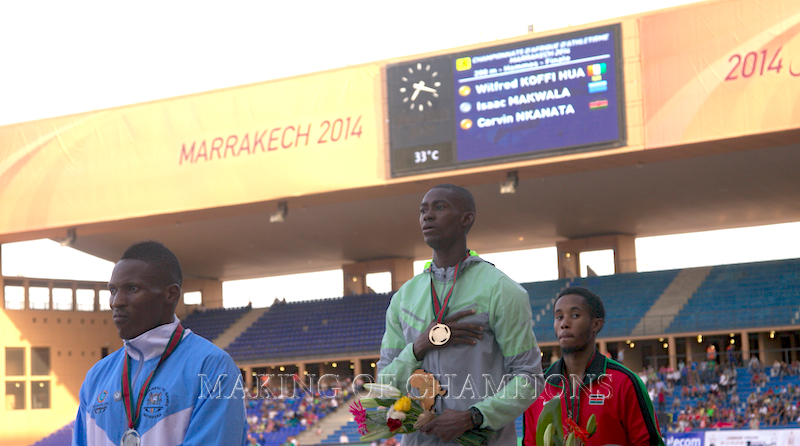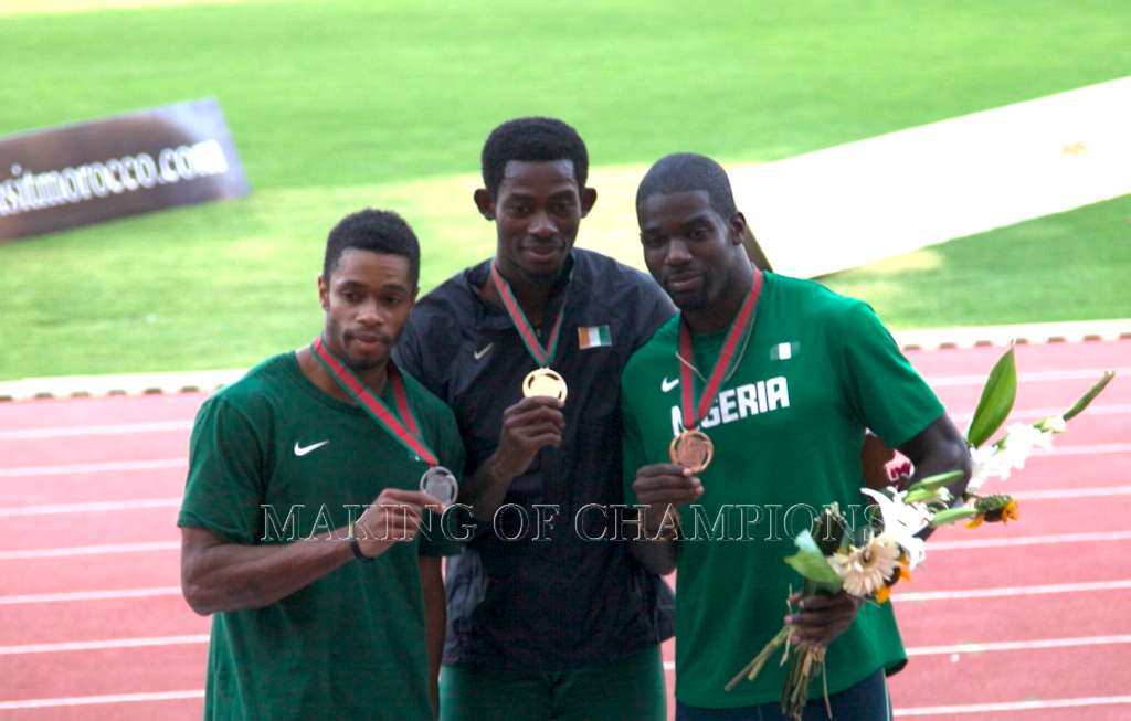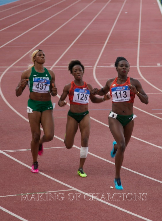 Blessing winning 100m GOLD at Marrakech 2014 in a new African Championship Record of 11.00 seconds flat!